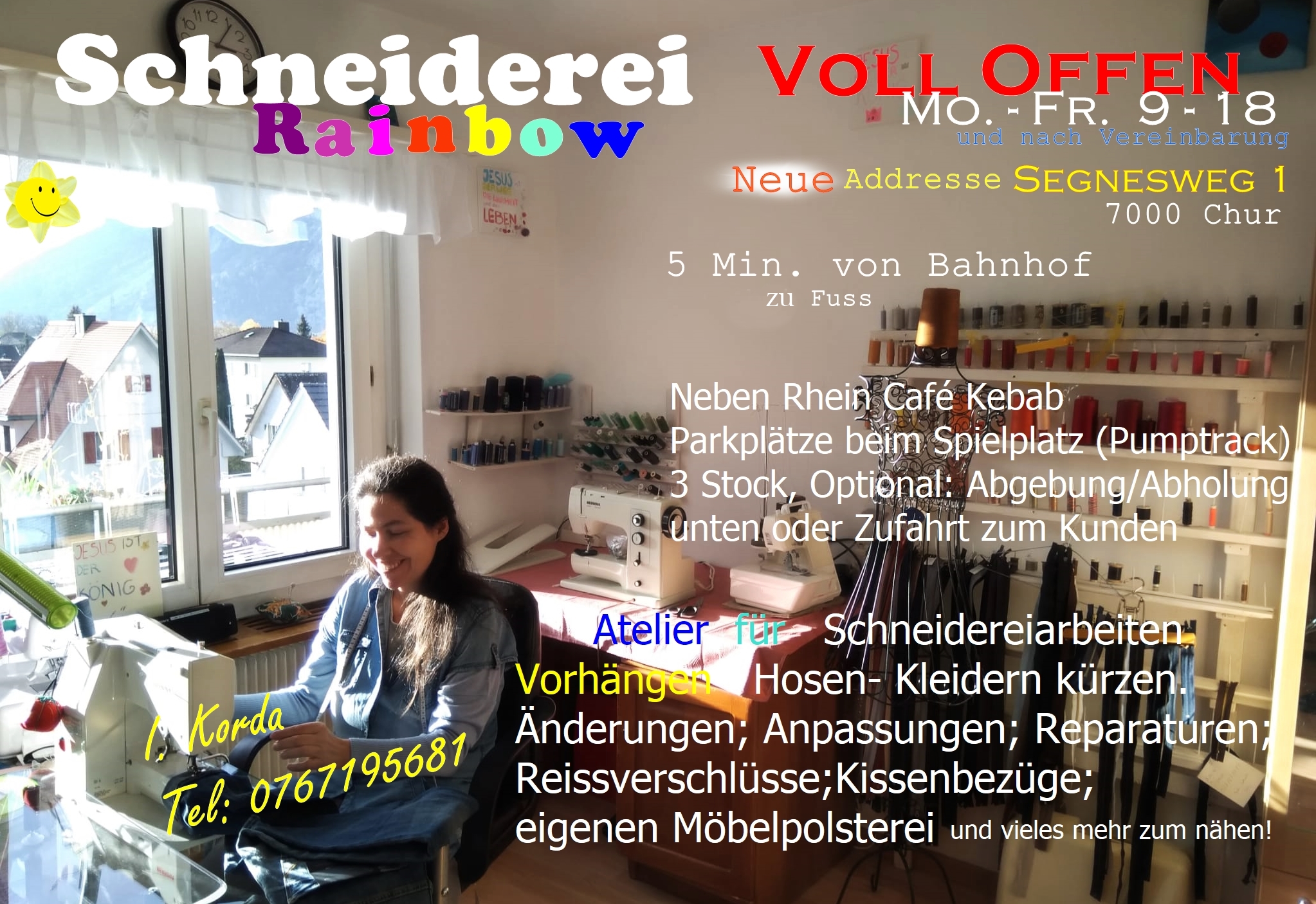 Vorhänge, Änderungen/Anpassungen (Hosen, Kleider kürzen etc.), Reissverschlüsse, Möbelpolsterei, Arbeiten an Lederwaren und vieles mehr!